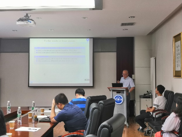 于树友的报告题目为“预测控制的鲁棒性分析”,主要讨论了非线性预测控制的本质鲁棒性,同时给出了允许扰动幅值上界的估算方法。