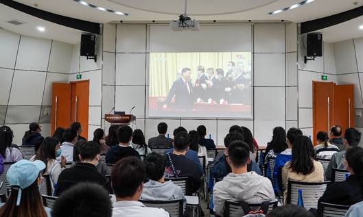 我院各系所、年级也积极组织师生通过电视、网络、广播等多种媒体,于教室、家中、寝室中收听、收看了二十大开幕会盛况。