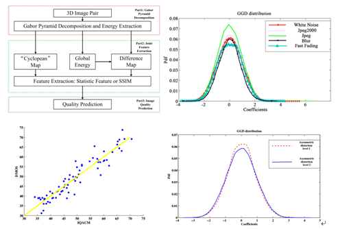 视觉是人类感受世界、探索世界的主要方式。因此,探索人类视觉系统处理和加工信息的机理不但可以帮助我们了解人类对空间认知的过程,并且拥有非常重要的实用价值。然而,由于采集设备和信道环境的非理想特性,图像、视频经传输后,质量往往会受损,即会出现失真现象。3D图像由于成像的特殊性,质量尤其容易受到损坏。高效、准确的3D图像质量评价算法对于3D多媒体的应用和3D图像技术的发展具有重要的意义。为了有效评估非对称失真的3D图像,提出了无参考3D立体图质量评价方法,有以下特点: