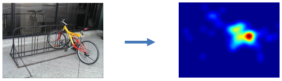 先后提出基于主成分分析的检测方法、基于自适应线性预测器的检测算法,实现对图像内容的有效理解与关注点检测。显著性图的预测结果如下图所示,该显著图可广泛应用于压缩、修复等多种图像处理过程,有效提高处理效率。