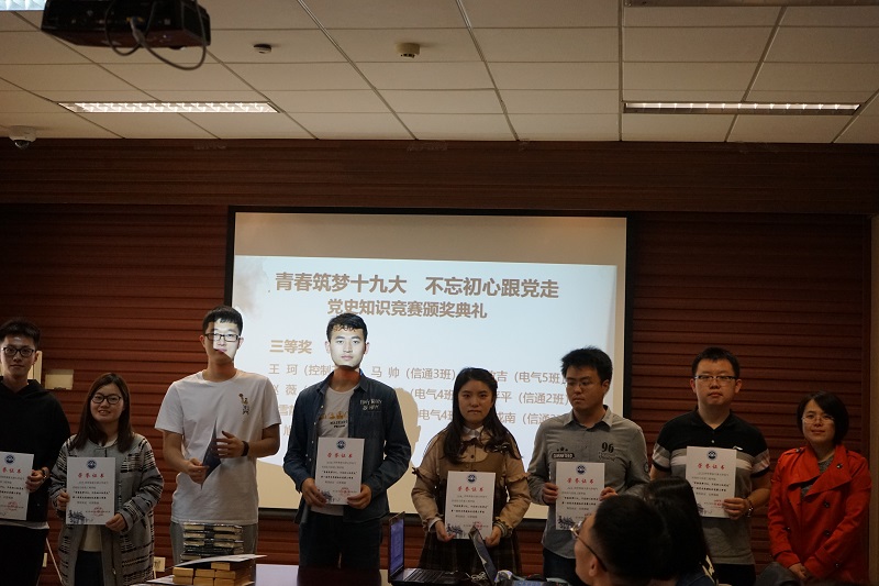 2018年4月20日14:30,由天津大学电气自动化与信息工程学院17级硕士电气第一、第四、第五党支部主办的“青春筑梦十九大,不忘初心和党走”第一届党史党建知识竞赛在卫津路校区26教学楼E区报告厅举行。