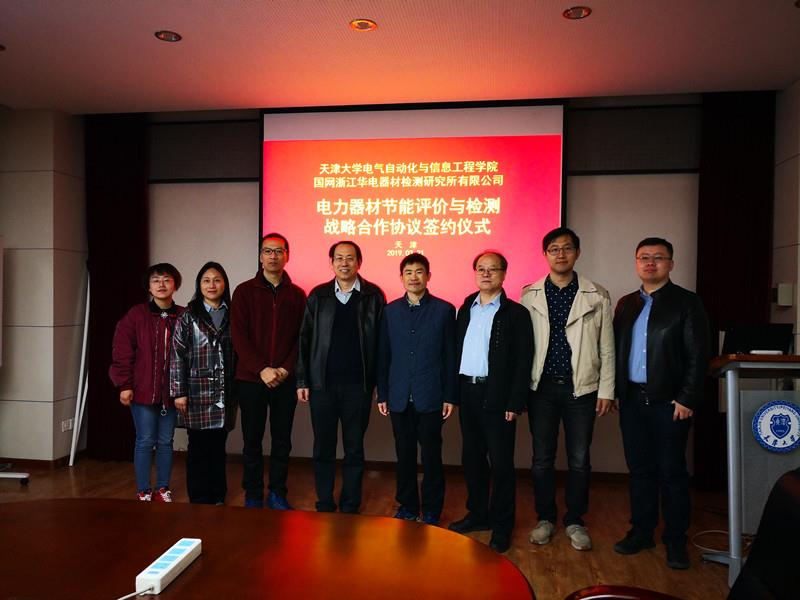 On March 21st, Zhong Hui, the president of State Grid Zhejiang Huadian Equipment Testing Institute Corporation (Huadian Institute), visited Tianjin University for academic exchange and business cooperation. The Institute signed a strategic agreement with the School of Electrical and Information Engineering of Tianjin University. Professor Wang Chengshan, the school dean and twenty other teachers and students attended the academic meeting and discussed with the representatives from Huadian Institute about the evaluation and testing of energy-saving features of electrical equipment, which future cooperation would focus on.