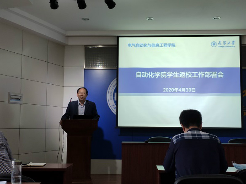 2020年4月30日上午9点,自动化学院在26楼报告厅召开学生返校工作部署会,学院领导班子成员,各系(中心)主任,实验室主任,支部书记,辅导员,教务员和后勤管理人员参加了会议,会议由党委书记李继平主持。