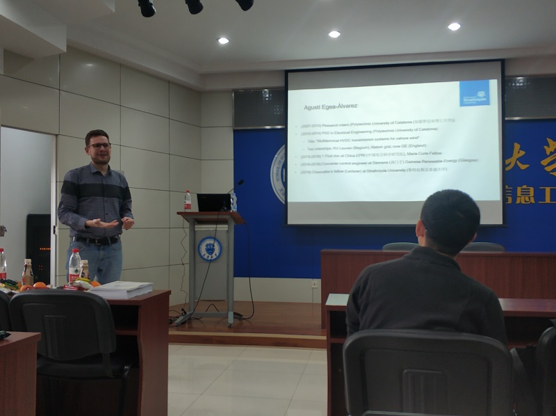 11月22日,应天津大学电气自动化与信息工程学院邀请,英国斯特拉斯克莱德大学大学Agustí Egea-lvarez博士和其指导的Callum Henderson博士研究生访问天津大学,在卫津路校区26教学楼E区602会议室做了题为“Challenges and potential solutions for power systems with high penetration of power converters: A British perspective”的学术报告,自动化学院朱介北教授及50余名师生听取了报告,俞露杰老师主持了报告会。