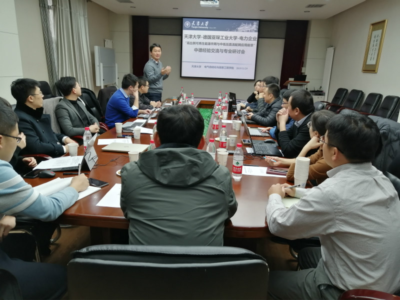 11月29日,“高比例可再生能源并网与中低压直流配网应用前景”中德经验交流与专业研讨会在天津大学第26教学楼E区236会议室举行,天津大学电气自动化与信息工程学院、德国亚琛工业大学以及各地电力企业、电科院等单位专家和学者30余人参加研讨会,自动化学院朱琳博士主持了会议。