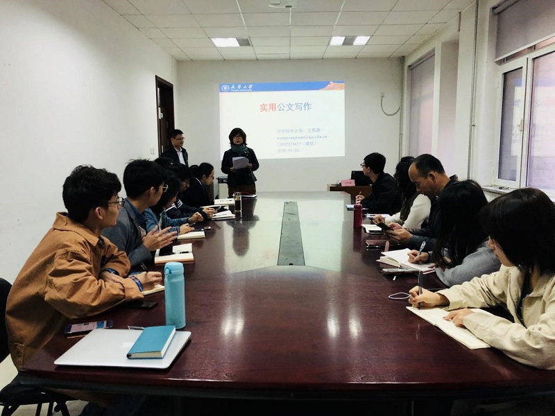 本次专题培训特邀天津大学外国语言与文学学院中文系副主任王用源为各位老师带来“实用公文写作”专题培训。王用源教授从计划类文书写作、总结类文书写作、常用公文写作与规范三方面展开辅导。他以具体案例为模板现场进行点评,并形象生动地向在场老师们展示了公文写作的技巧与规范。