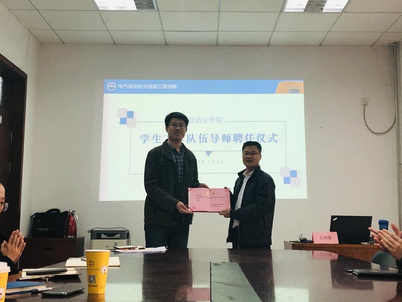 培训结束后,自动化学院党委副书记刘立山为王用源教授颁发了自动化学院学生工作队伍成长导师聘书,感谢王用源教授的精彩讲座,也希望未来王用源教授能给辅导员老师们提供更多的学习资源和机会。