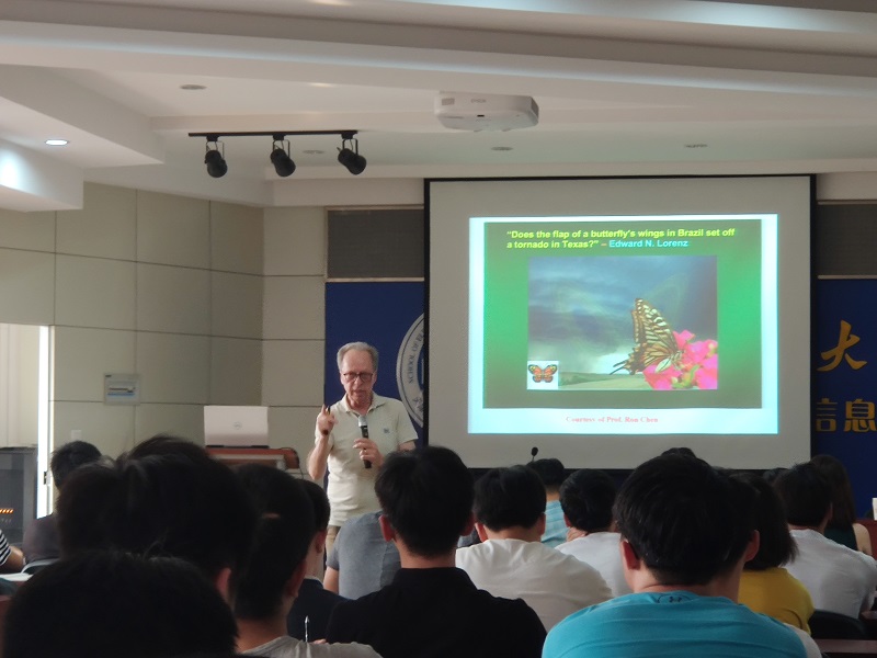 5月15日,应天津大学电气自动化与信息工程学院邀请,英国阿伯丁大学Celso Grebogi院士到访天津大学,在26教学楼E区602报告厅做了题为“Chaos and Complexity”的学术报告,自动化学院高忠科教授及200余名师生听取了报告。