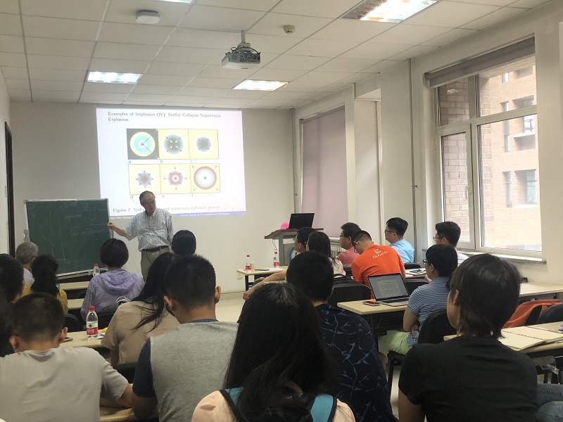 Goong Chen教授首先介绍了有趣且重要的内爆现象,并给出了材料科学、土木工程、天文学等专业领域中内爆现象的例子和视频。随后介绍了如何使用分叉模型及强大的LS-DYNA软件来模拟内爆现象。Goong Chen教授幽默风趣的报告风格赢得了阵阵掌声,同学们纷纷表示获益匪浅。