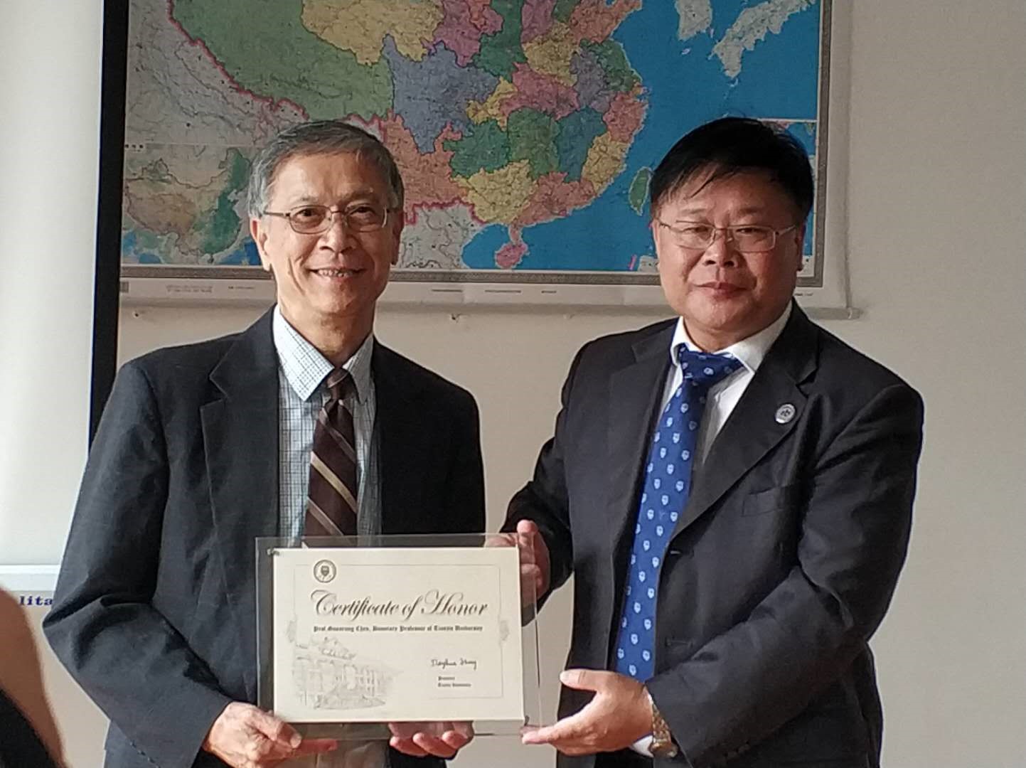 9月27日,应天津大学自动化学院邀请,欧洲科学院院士、第三世界科学院院士、香港城市大学陈关荣教授到访天津大学,接受天津大学名誉教授聘书。名誉教授授予仪式在卫津路校区会议楼举行,天津大学副校长元英进出席仪式并为陈教授颁发了名誉教授荣誉证书及纪念木牌,自动化学院副院长张涛、院长助理谭超等参加了授予仪式。
