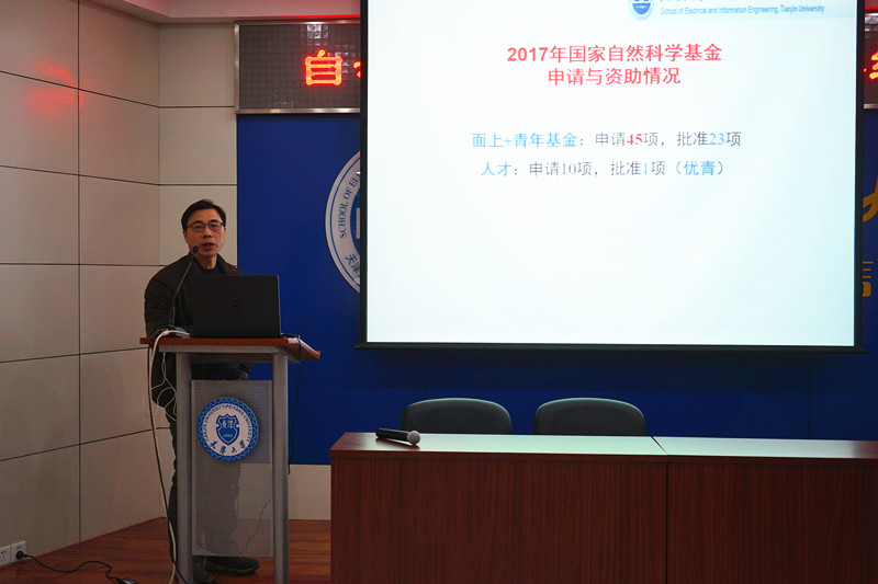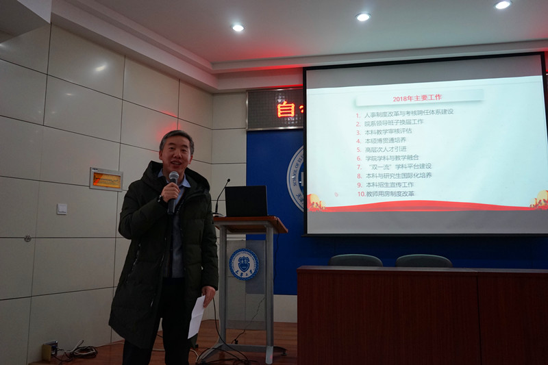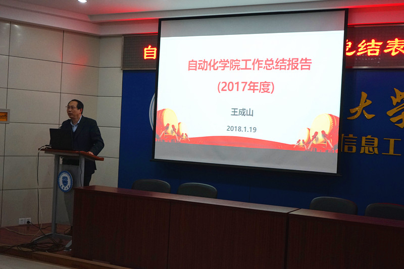 院长王成山对2017年学院整体工作进行了总结:2017年度,自动化学院在科技研发、教学成果、人才队伍建设、制度建设以及文化建设等方面取得了优异的成绩,这是新学院成立以来全院教职工凝心聚力、开拓进取的结果,也为学院在今后的发展建设中打开了良好的局面。这些成绩证明了学院实力,也彰显了学院上下一致齐心协力的凝聚力,代表着全院教职工干事创业的积极性和坚定信心。这是学院发展的基础,也是学院在天津大学“双一流”建设过程中奋勇前进的力量源泉。希望在新的一年里,学院上下能够继续保持奋发向上的劲头,撸起袖子加油干,为学院的建设添砖加瓦。