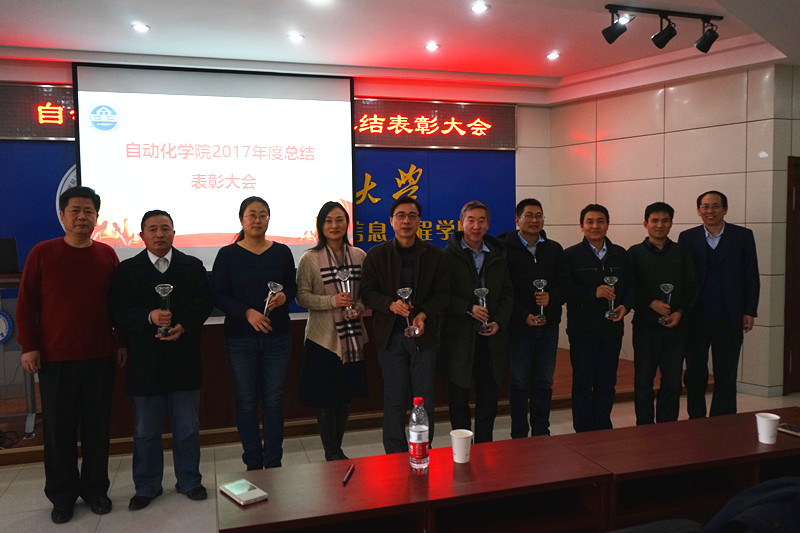 大会第三项议题是本次大会的高潮,举行了自动化学院2017年度“劳动竞赛教工先锋岗”和“劳动竞赛示范集体”的颁奖仪式。党委书记李继平宣读了表彰决定,对个人和团队的优秀事迹进行了介绍。王成山院长为获奖个人和团队代表颁发了奖杯。李继平书记说,希望受到表彰的个人和团队能够再接再厉,继续发扬团结精神和无私奉献的优良传统,严谨治学,在今后取得更大的成绩。