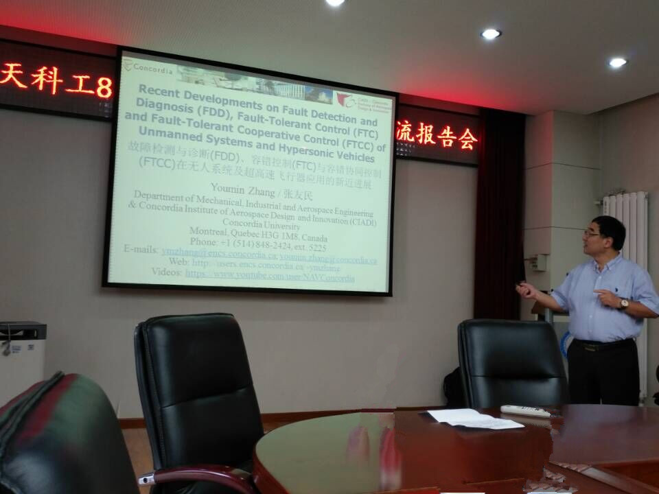9月2日,加拿大康考迪亚大学(Concordia University)张友民教授应邀到自动化学院进行学术交流,并在26-E-236会议室做了题为“故障检测与诊断、容错控制与容错协同控制在无人系统及高超声速飞行器应用的新进展”的专题讲座,自动化学院相关领域老师和学生参与交流。