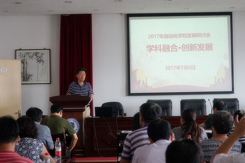 在上午的主题发言中,李继平书记首先简要介绍了召开大会的背景。他说,本次发展研讨会对于自动化学院的建设有着重要意义,这既是新的自动化学院成立后的第一次全院教授会,也是积极响应“双一流”大学建设的战略研讨会。通过会前精心的准备,各学科将对学科的发展现状和今后前景做全面梳理,对存在的不足和解决的方案进行讨论。同时,本次大会还要对未来的教学工作和人才培养进行深入研讨,希望未来人尽其才,各自发挥自己的特长,为学院更好更快的发展打下坚实基础。
