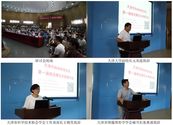 2017年7月12日,天津市科协科技论坛暨第一届视觉模式分析研讨会在天津大学26楼D区多媒体报告厅召开。天津大学副校长元英进,天津市科协学会工作部部长王婉莹,天津市图象图形学学会秘书长张典国、监事长徐伯夏,天津大学电气自动化与信息工程学院副院长孟庆浩,天津市科协刘亚敏及多所高校、企业与科研院所代表应邀出席此次研讨会。天津理工大学副校长陈胜勇教授、美国纽约州立大学张仲非教授、北京航空航天大学曹先彬教授的代表甄先通副教授、中国科学院西安光学精密机械研究所副所长李学龙研究员、中国科学院自动化研究所人工智能与先进计算联合实验室主任程健研究员,应邀为此次研讨会作专题报告。此次会议吸引了校内外师生200余人报名参与,研讨会由天津大学庞彦伟教授主持。
