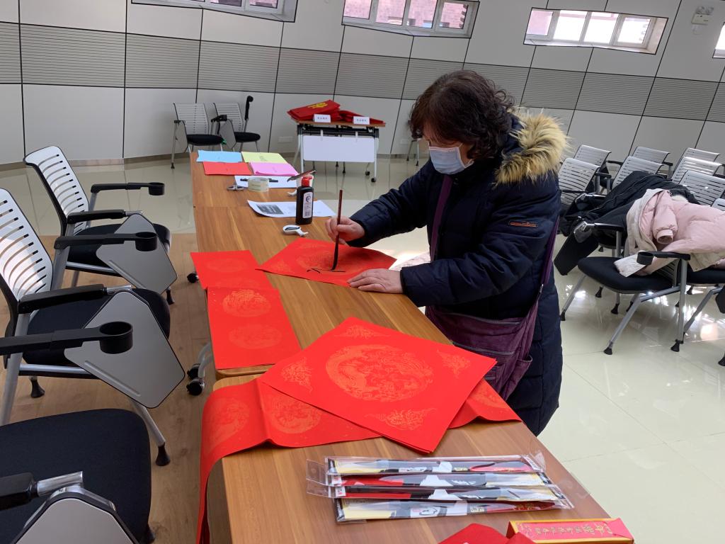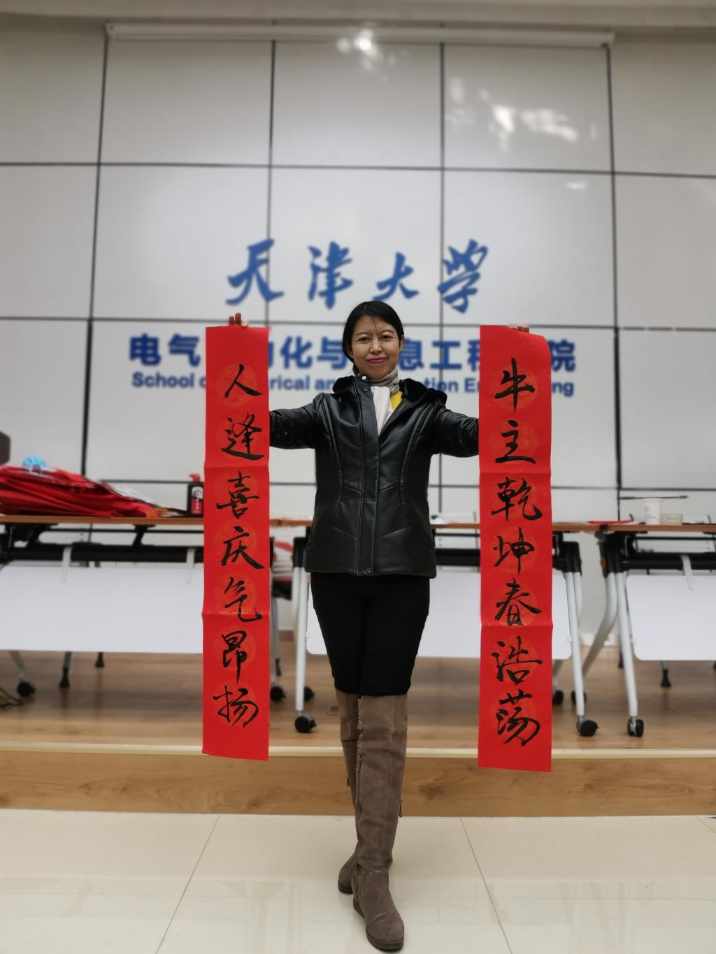 猜灯谜,知识答题,一张张生动的福字,一对对火红的春联,为教职工们送去了新年祝福。活动现场,老师们挥毫泼墨,笔走龙蛇,写下一幅幅春联。春联中有表达新年祝福的“春来大地金牛跃,福至人间紫燕飞”,也有体现天大特色的“海棠含韵辞旧岁,北洋傲雪迎新春”,一派祥和喜庆。