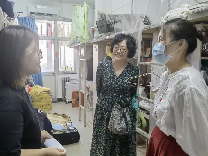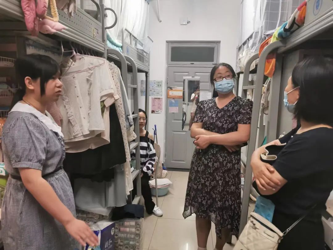 党委组织员张秀娟与辅导员王晓晶、袁欣雨一起深入2021级本科生宿舍,了解学生思想动态与学习生活情况,倾听同学们的意见与建议。走访中了解到学生将陆续离校返乡,引导同学们严格遵守防疫政策,做好个人防护,同时在离校前做好安全隐患检查,遇到困难第一时间和辅导员、学院联系,确保平安顺利回家。