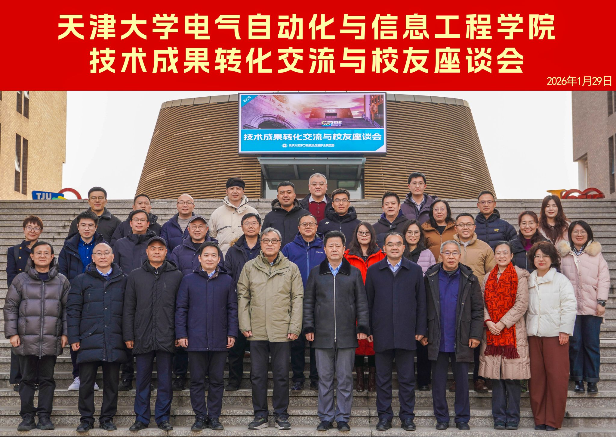 2026年1月29日,天津大学电气自动化与信息工程学院成功举办科技成果转化交流与校友座谈会。本次活动汇聚了学院杰出校友、校院两级科研管理部门代表,以及来自天津市高新区、徐州市高新区的科技主管部门嘉宾,旨在构建产学研深度融合的协同创新平台,推动学院高水平科研成果转化,服务国家创新驱动发展战略。