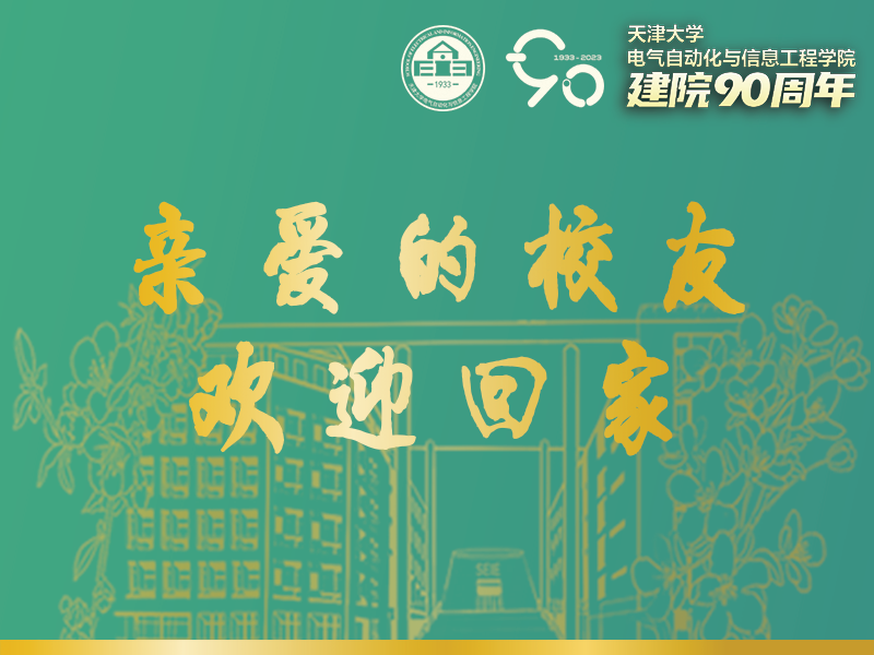 天津大学电气自动化与信息工程学院建院90周年致广大校友的一封信亲爱的校友们,你们好! 栉风沐雨九秩尽,弦歌不辍百岁新。2023年,天津大学电气自动化与信息工程学院(前身北洋大学电机工程系)将迎来90周年华诞...